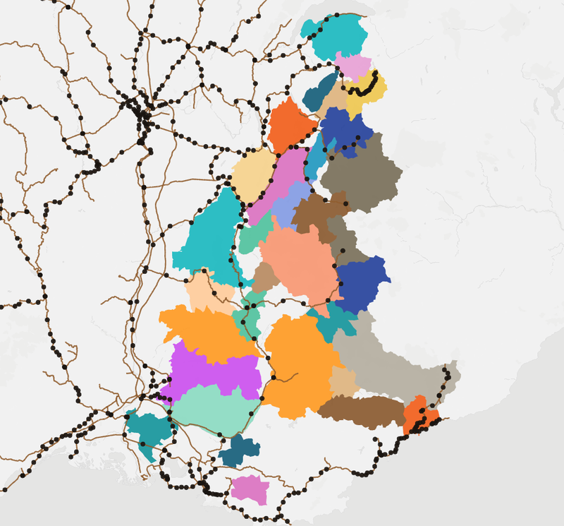 Un second travail a été conduit pour convertir cette donnée tabulaire en donnée géographique (geojson). Le périmètre des massifs a été repris en suivant les définitions géographiques de ceux-ci.