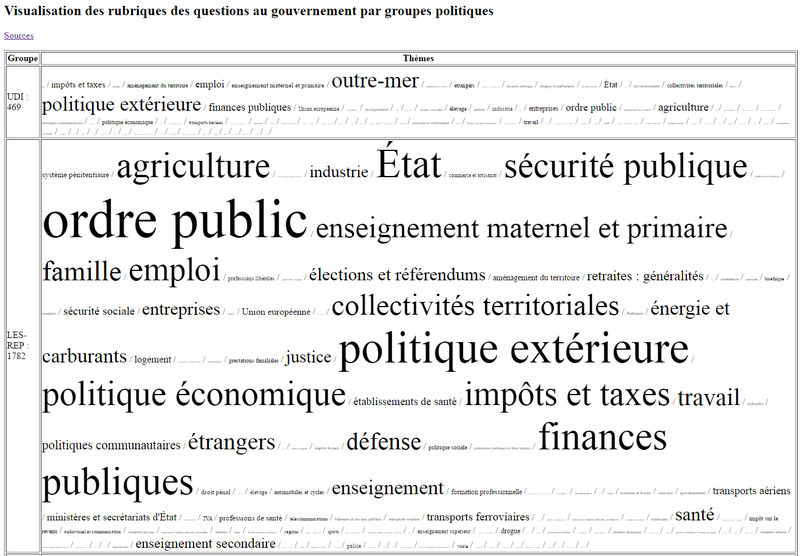 Ce jeu rassemble l’ensemble des questions posées au Gouvernement ainsi que les réponses de ce dernier lors des séances publiques dédiées les mardis et mercredis depuis le début de la quatorzième législature (juin 2012). Ces données sont disponibles en format XML et JSON.