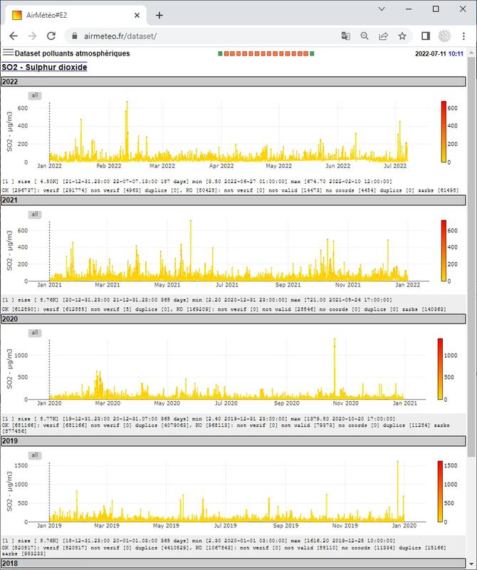 Données « temps réel » de mesure des concentrations de polluants atmosphériques réglementés Laboratoire Central de Surveillance de la Qualité de l'Air Mis à jour le 15 avr. 2026Métadonnées :Bon (78 %) 42K252K48La surveillance de la qualité de l’air ambiant en France est confiée aux 18 Associations Agréées de Surveillance de la Qualité de l’Air (AASQA). Les stations de mesure de la qualité de l’air qui part…
