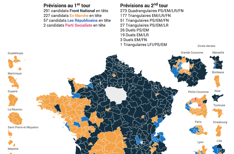 La carte interactive permet de représenter les bassins de population les plus importants de France (Paris, Marseille, Lyon...) à différents endroits de la France Métropolitaine.
