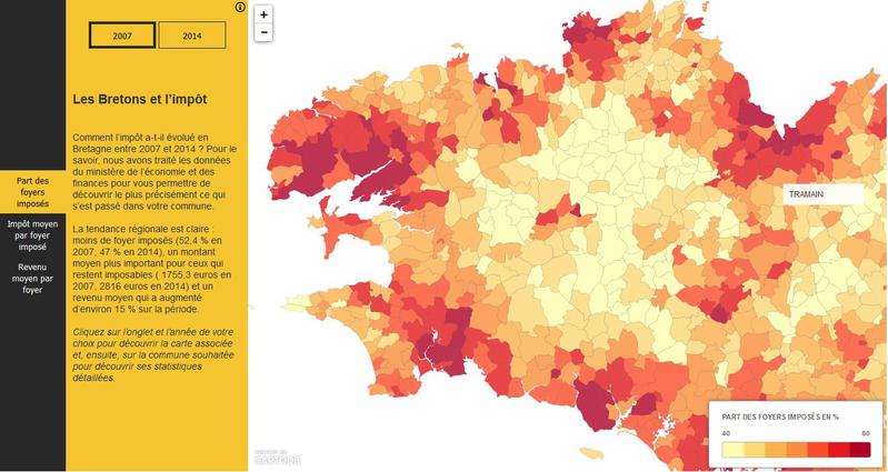 Evolution de la dotation globale de fonctionnement des 36.000 communes françaises entre 2014 et 2016.