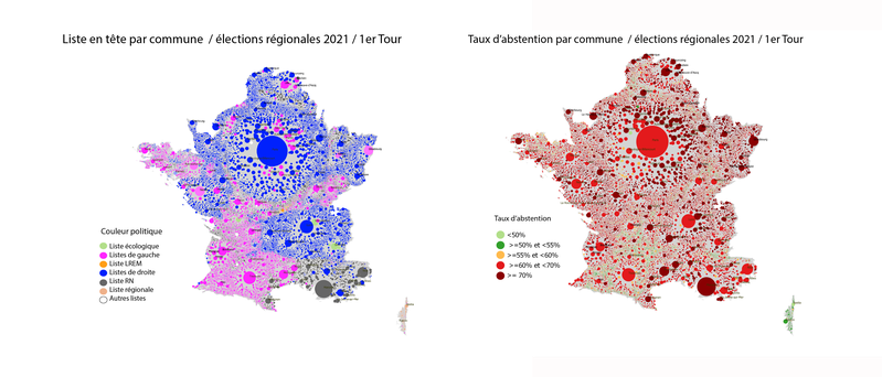 Election régionales 2021 - 1Tour - liste en tête et abstention par communeAlain Ottenheimerpublié le 24 juin 20212K0